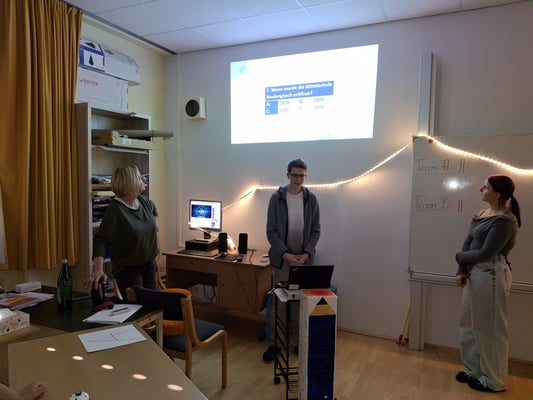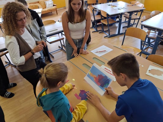 Danach wurden die Gäste von Guides der 4. Klassen durch das Haus geführt. Die Schüler und Schülerinnen sowie das Lehrpersonal der Mittelschule präsentierten in vielen Stationen die Arbeit an der Schule. Es gab Stationen in der Bibliothek, im Musikzimmer, im EDV-Raum, in der Küche, im Physiksaal, in den Werkräumen, im Turnsaal und in den Räumlichkeiten der Nachmittagsbetreuung. Ebenso wurde die digitale Klasse präsentiert, es gab ein Quiz zu lösen, Origami wurden gebastelt, Deutsch- und Mathematikeinheiten wurden vorgestellt.