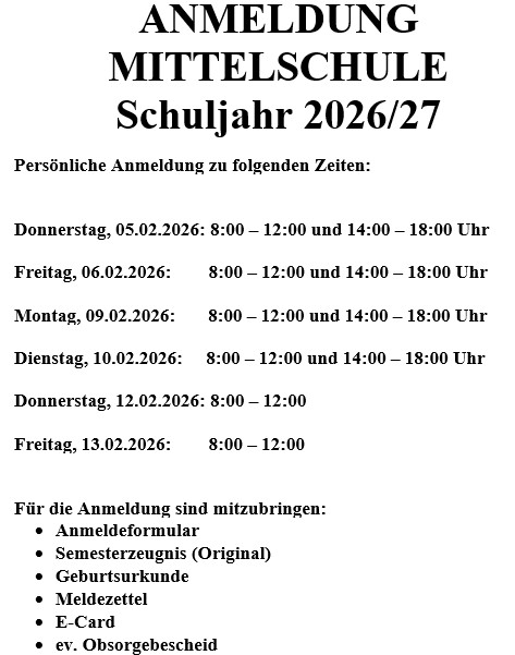 Anmeldung zur Aufnahme in die NÖMS Neulengbach